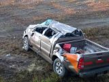 A la altura del kilómetro 3010 de la Ruta Nacional Nro. 3, sobre pavimento escarchado, un automóvil Volkswagen Gol conducido por Celeste Marchan, de 19 años de edad, se despistó, volcó y luego se precipitó a un profundo barranco, cayendo pesadamente desde una gran cantidad de metros de altura hasta quedar apoyado sobre su lateral izquierdo, completamente destruído.