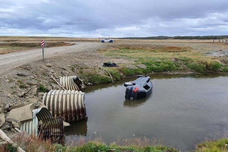 Despiste y vuelco en la Ruta H, de un automóvil en el que se trasladaban tres personas, el cual cayó al río Ewan a la altura de la estancia Indiana. Afortunadamente, los pasajeros salieron ilesos.