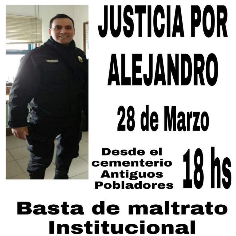 La movilización está prevista para el domingo 28 de marzo desde el cementerio Antiguos Pobladores (Maipú y Guaraní), donde Cáceres fue enterrado, hasta la Casa de Gobierno y Jefatura. Según fuentes cercanas a los efectivos, el padre de Alejandro estará presente. Durante la madrugada del domingo 21 de marzo, Cáceres se quitó la vida de un disparo en la cabeza. El agente estaba procesado en una causa penal por “lesiones agravadas” y “abuso sexual” por un grave episodio de Violencia de Género con su ex pareja, también policía.