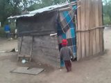 La casilla en la que vive está hecha de paredes de madera fina, el techo está cubierto con lijas y bolsas de plástico para que no entre el agua. Tienen luz y agua. El baño está adentro pero es de madera y necesitan cambiarlo. No tienen Internet y solo pueden estar comunicados cuando consiguen plata para cargar el único celular de la casa, el de su mamá.