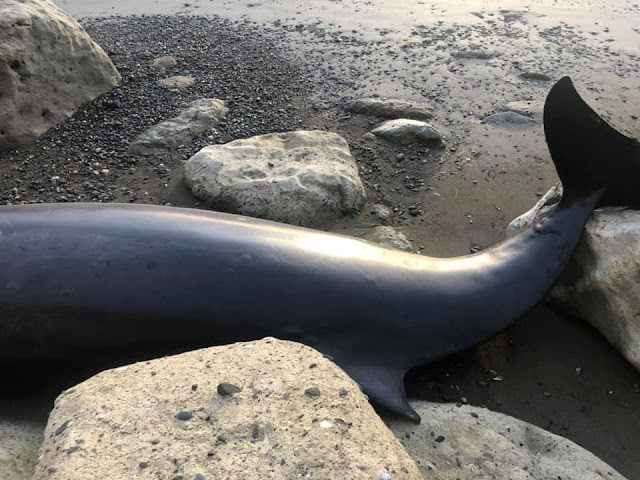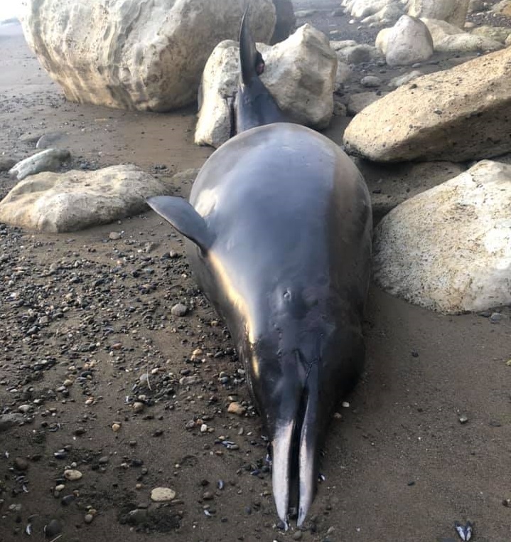 “Ayer anduvimos por Hito 1, pescando, y mientras paseaba nos topamos con estos animalitos muertos” indicó Marisa Chávez, una vecina de Río Grande que este fin de semana tuvo el desafortunado encuentro con estos cetáceos en la zona denominado Hito 1.